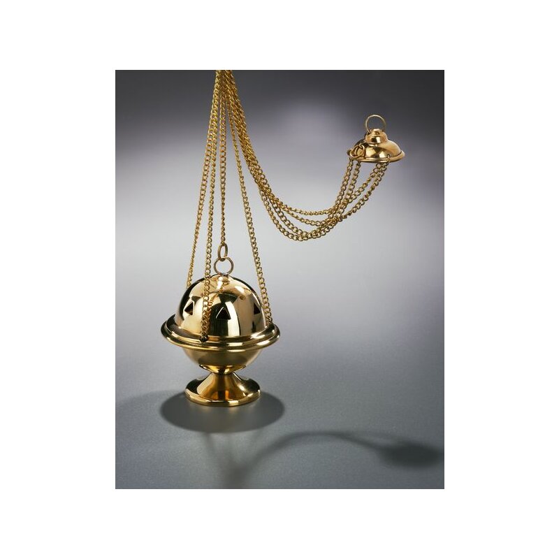 Poliertes Rauchfass aus Messing, mit Kohlepfännchen.