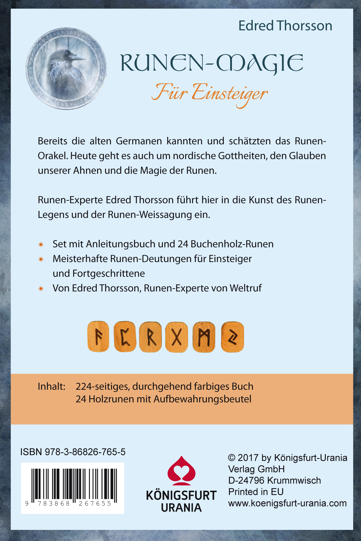 Der fundierte Runenexperte Edred Thorsson führt hier in die Welt der der geheimnisvollen Runenweissagung ein. Es geht um nordische Gottheiten, den Glauben unserer Ahnen und die Magie der Runen. Das Set mit ausführlichem Buch und Holzrunen im Beutel ermöglicht es jedem, selbst dieses mystische Orakel auszuprobieren.